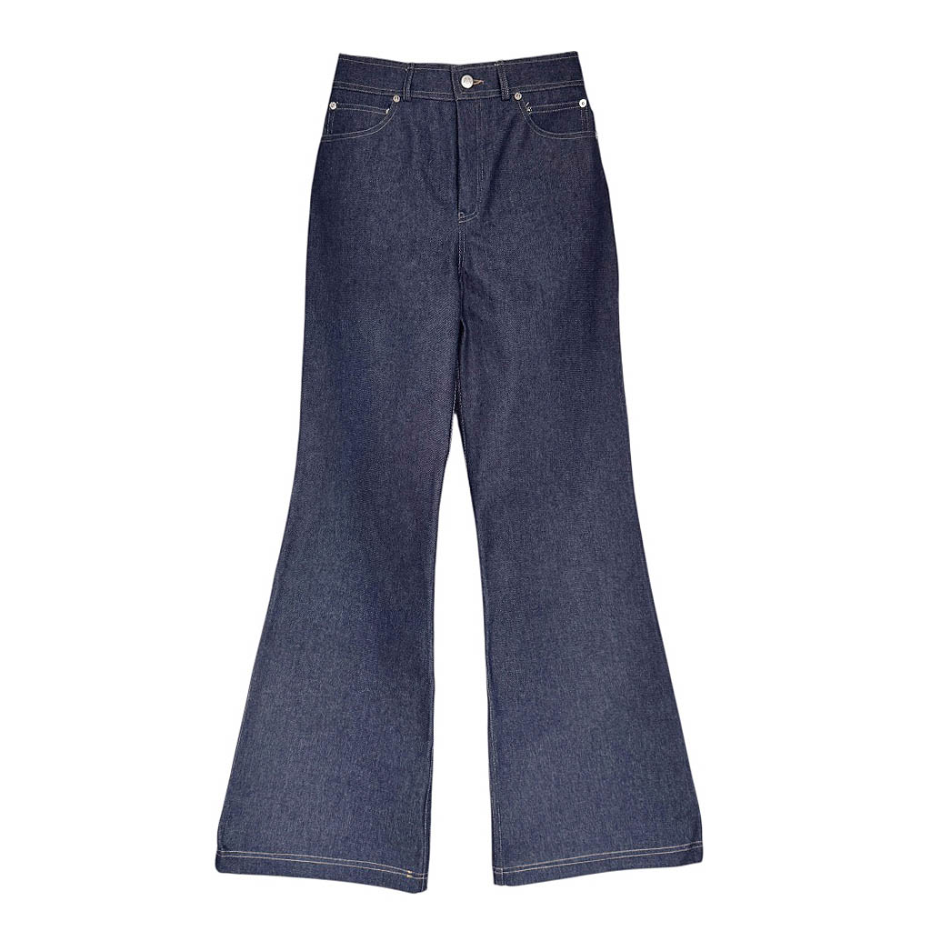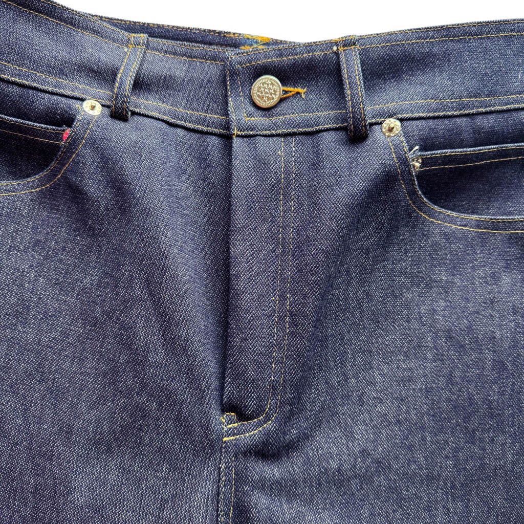 Vegas 6 Poches Fureur de vivre Denim N22 Elephant Paris Design Ce pantalon Elephant Paris est une pièce unique, entièrement conçue et fabriquée à Paris à partir de matériaux anciens d’exception.Son tissu principal en denim 1 0 0 % coton, provient d’un stock neuf d’époque des années 2 0 0 0. Le zip est lui aussi vintage neuf d’époque des années 1 9 7 0, il complète ce design au charme intemporel. La taille haute arrondie structure la silhouette, tandis que les quatre poches à l’avant et les deux poches plaquées au dos apportent une allure soignée et pratique.Les finitions sont gansées au biais de…