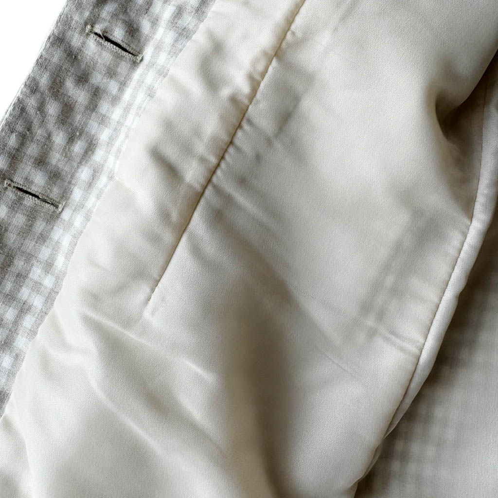 Veste 80s vichy beige La City Elephant Paris Vintage Années 80, coton et polyester, Mesures à plat : Epaules 44cm, Poitrine 47cm, Longueur dos 76cm, Taille 38/40/ M