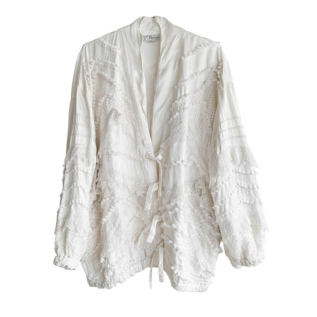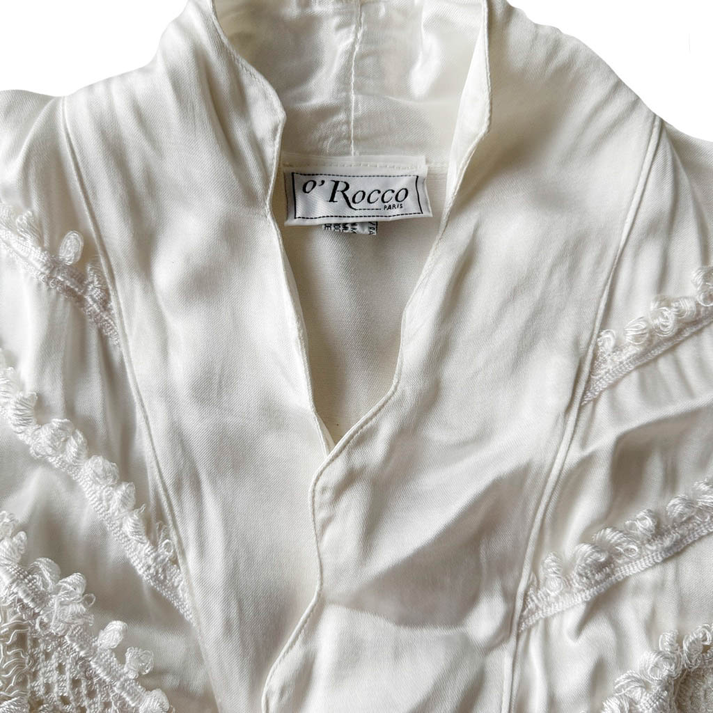 Veste gilet satin matelassée O’Rocco Elephant Paris Vintage Jolie veste en satin matelassée et incrustation de dentelles, Années 80, veste lourde et épaisse, se ferme avec des liens en satin, Mesures prises à plat : Epaules 64 cm, Poitrine 70 cm, Longueur dos avec le col 84 cm, Longueur manche 57 cm, Taille L / XL,