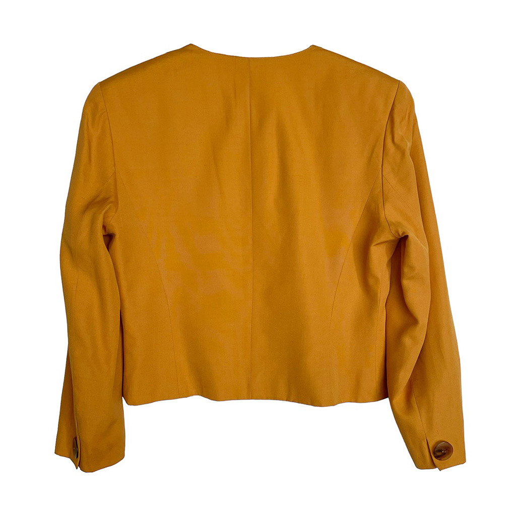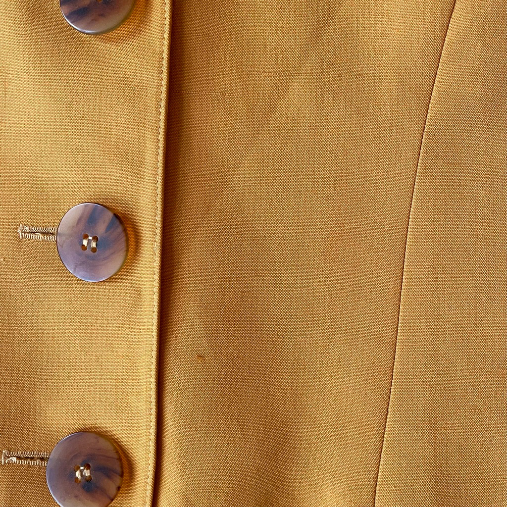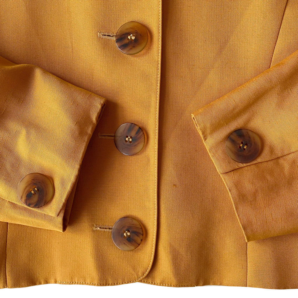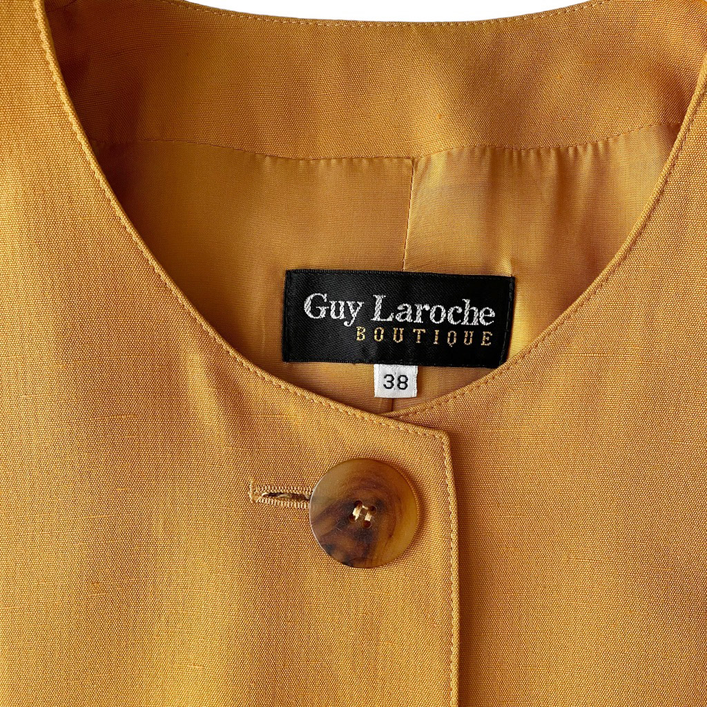 Veste Guy Laroche moutarde Boutique Elephant Paris Vintage fermée par cinq gros boutons devant, doublée, Taille M Mesures à plat : Epaules 43cm, Poitrine 49cm, Taille 48cm, Longueur dos 50cm, Taille 38/40