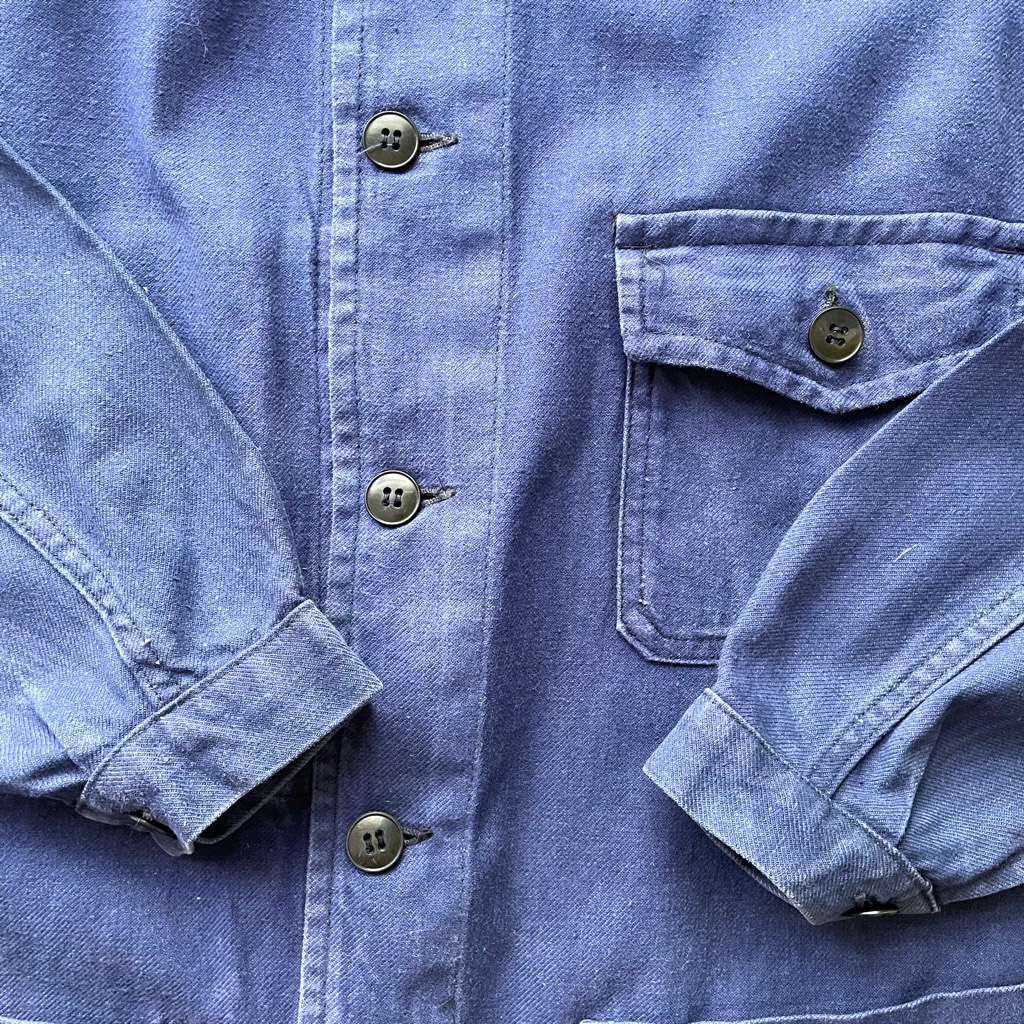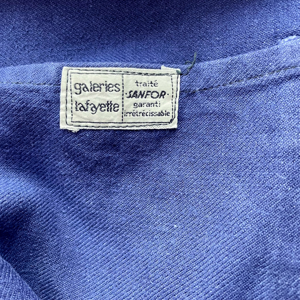 Veste Sanfor Galeries Lafayette bleu de travail, bleu de chauffe vintage 50s Elephant Paris Vintage bon état, Grandes poches, boutonné devant Mesures à plat : Epaules 47cm, Poitrine 53cm, Longueur dos 72cm, Taille 40