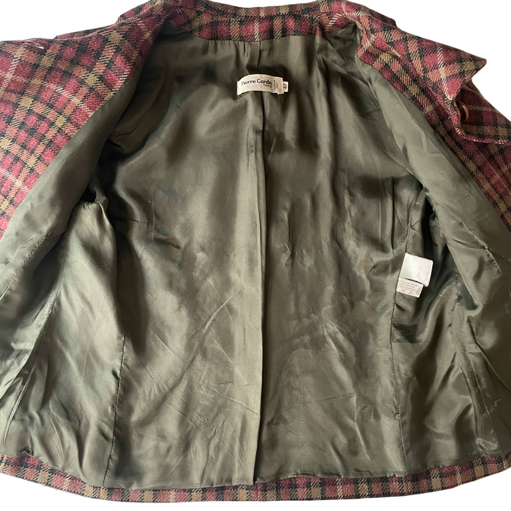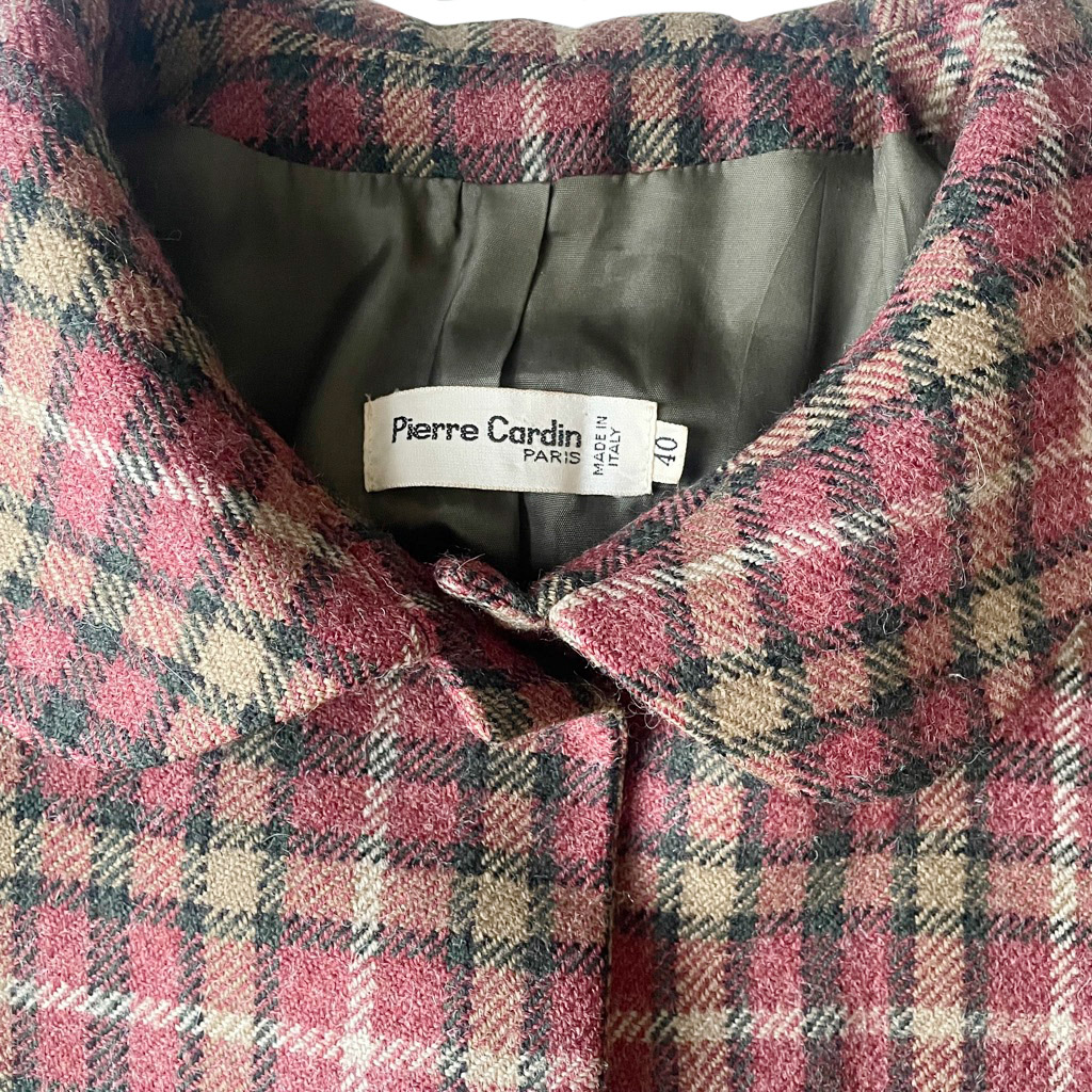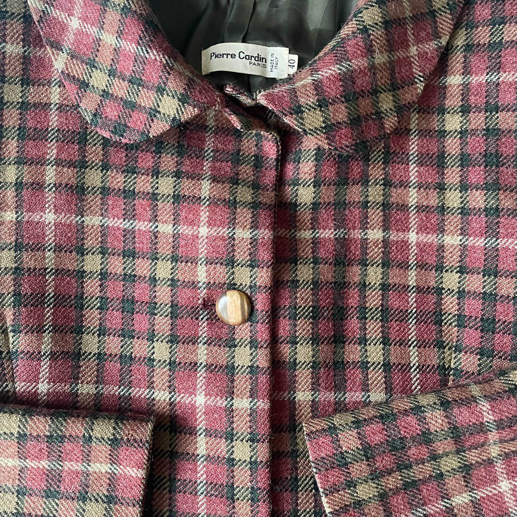 Mini veste tartan Pierre Cardin Elephant Paris Vintage légèrement cintrée, doublée, 3 boutons devant, col Claudine, Taille S/M Laine, lainage Mesures à plat : Epaules 45cm, Poitrine 50cm, Longueur dos 56cm, Taille globale 38