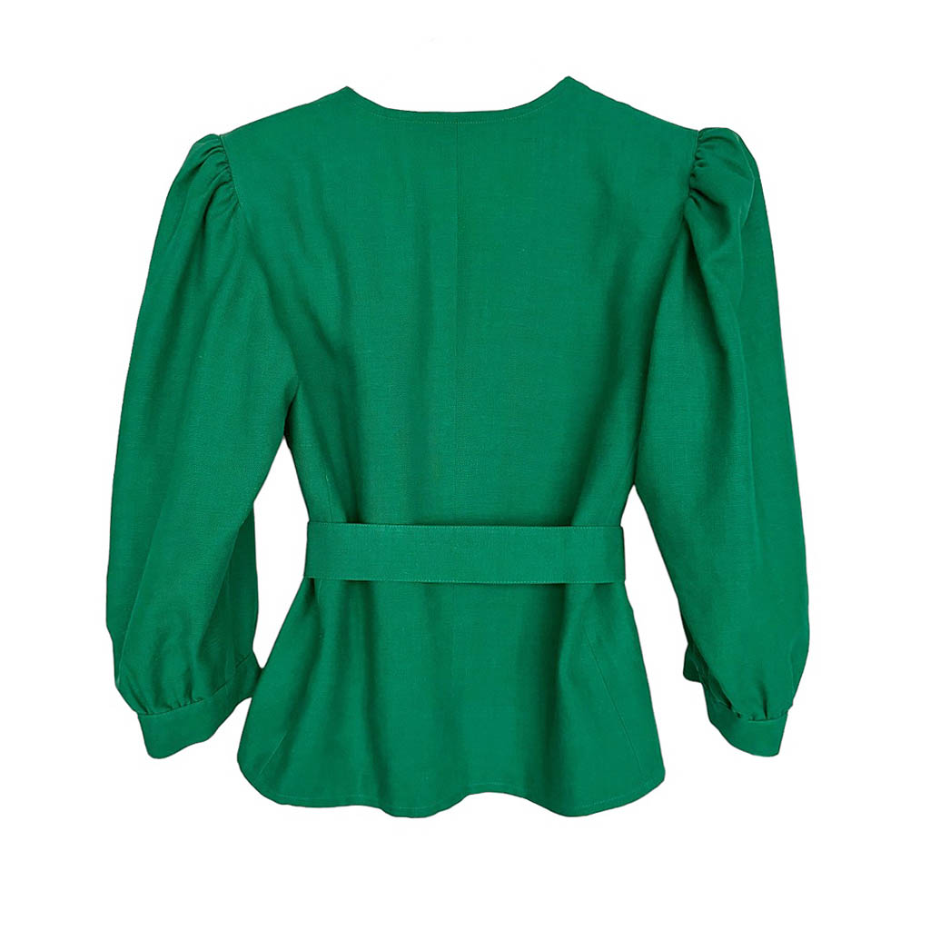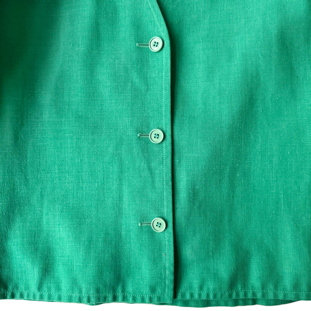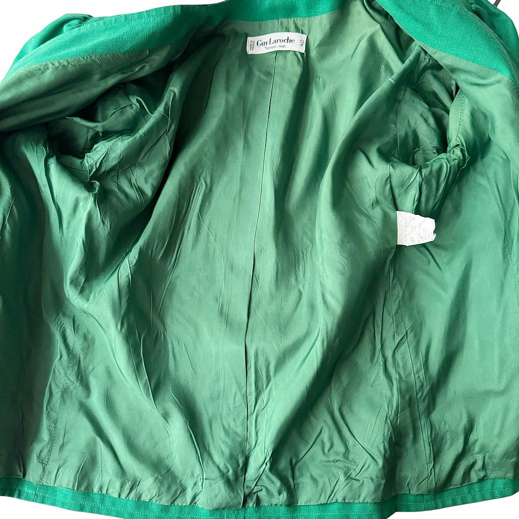 Veste verte coton Guy Laroche Elephant Paris Vintage Années 80, coton, Mesures à plat : Epaules 32cm, Poitrine 49cm, Taille 40cm, Longueur dos 109cm, Taille 38/40
