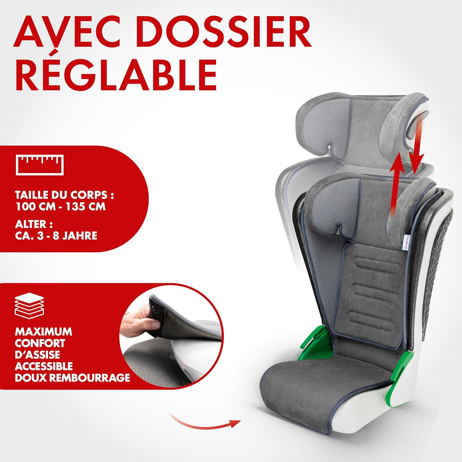 Ce siège se distingue également par son design ergonomique et ses finitions de qualité. Fabriqué en polyester de haute qualité, son coloris anthracite s’harmonise facilement avec l’intérieur de votre véhicule. Le réglage de l’appui-tête permet d’accompagner la croissance de votre enfant, assurant ainsi une adaptation morphologique tout en offrant un maintien optimal de la tête et du cou.