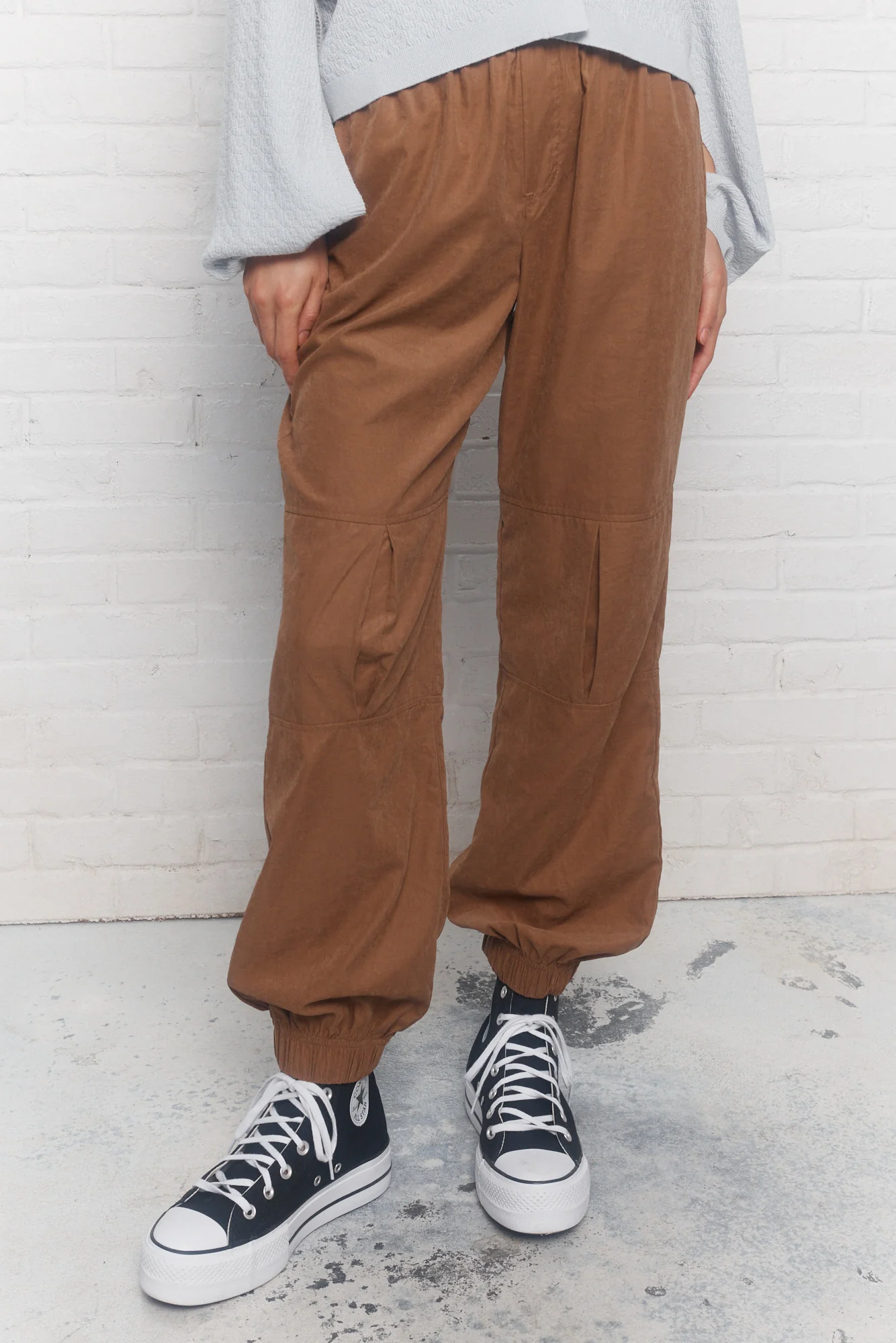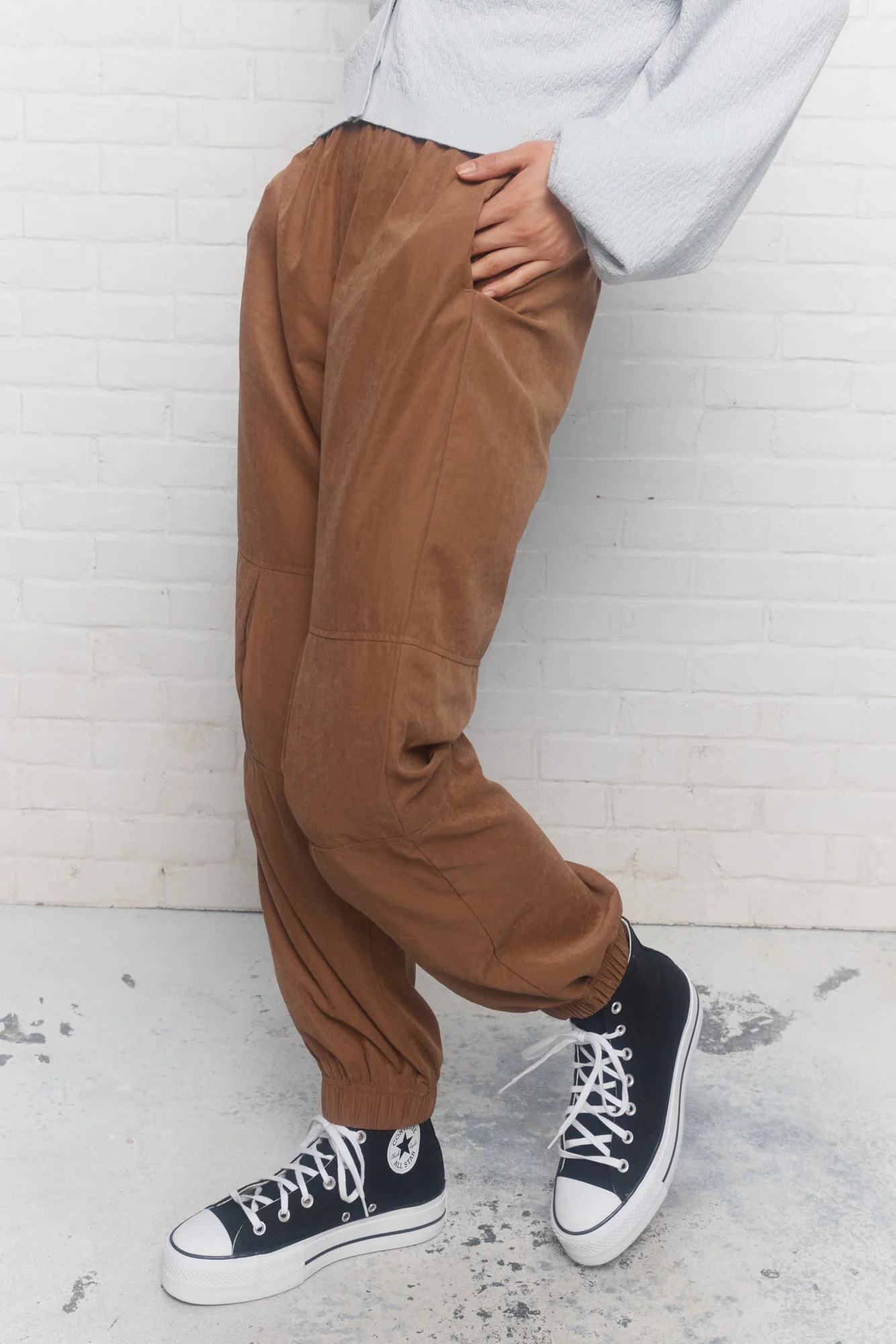 Le pantalon brun ajusté aux chevilles Weekai propose un effet stylé légèrement bouffant. Sa coupe décontractée, ses poches pratiques et tous ses détails de conception en font un pantalon unique.