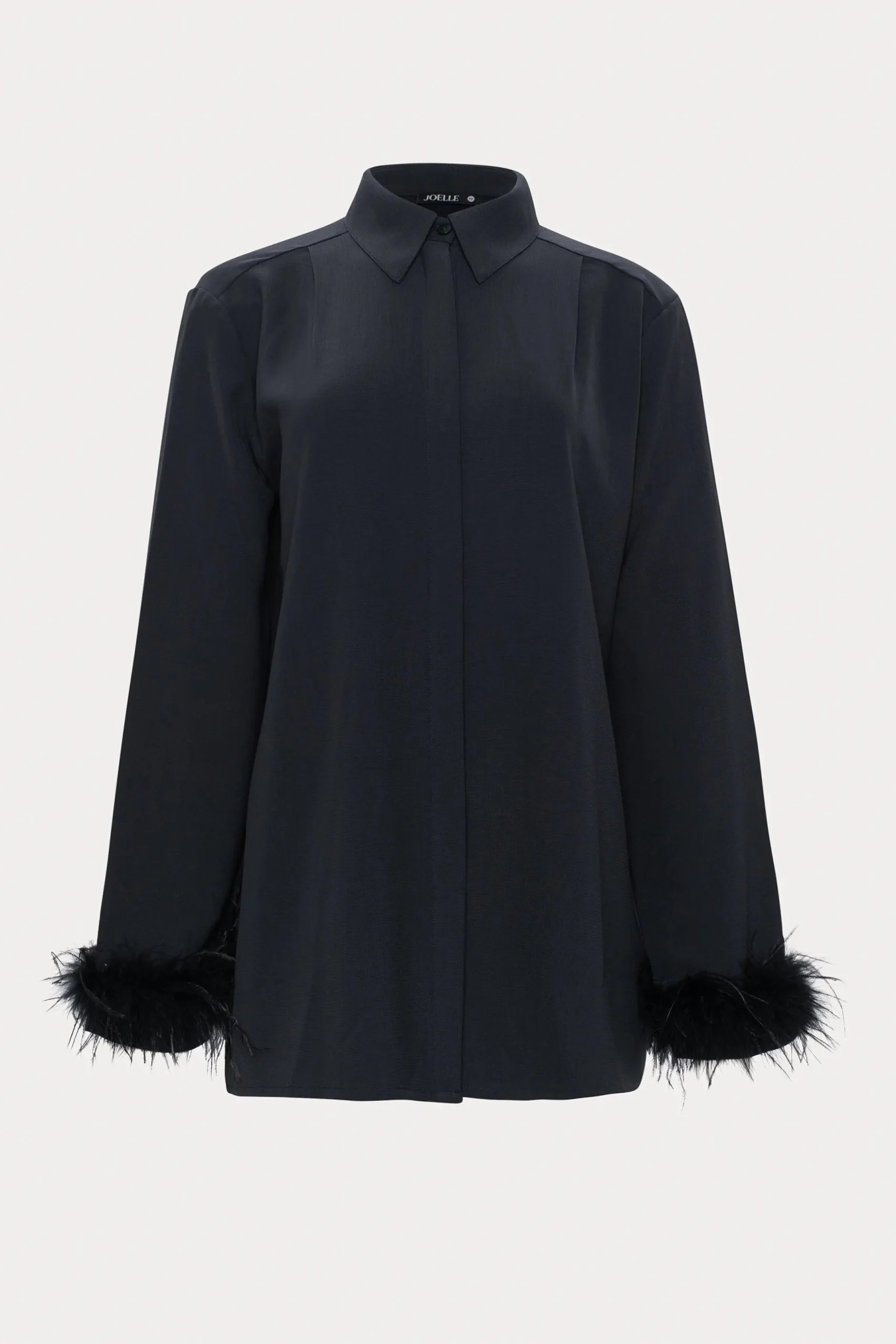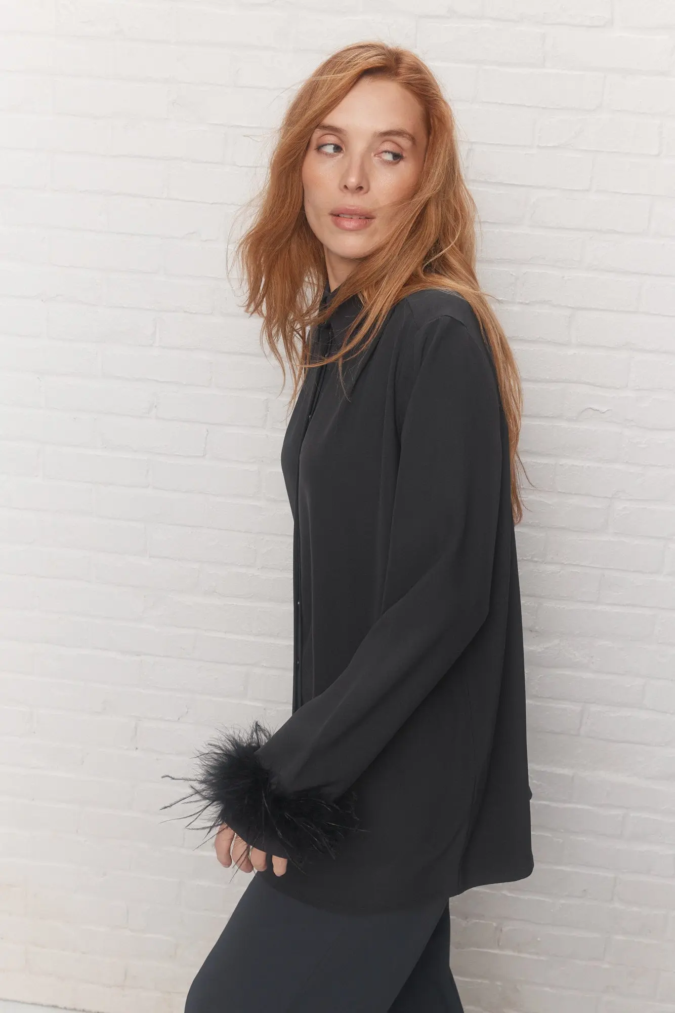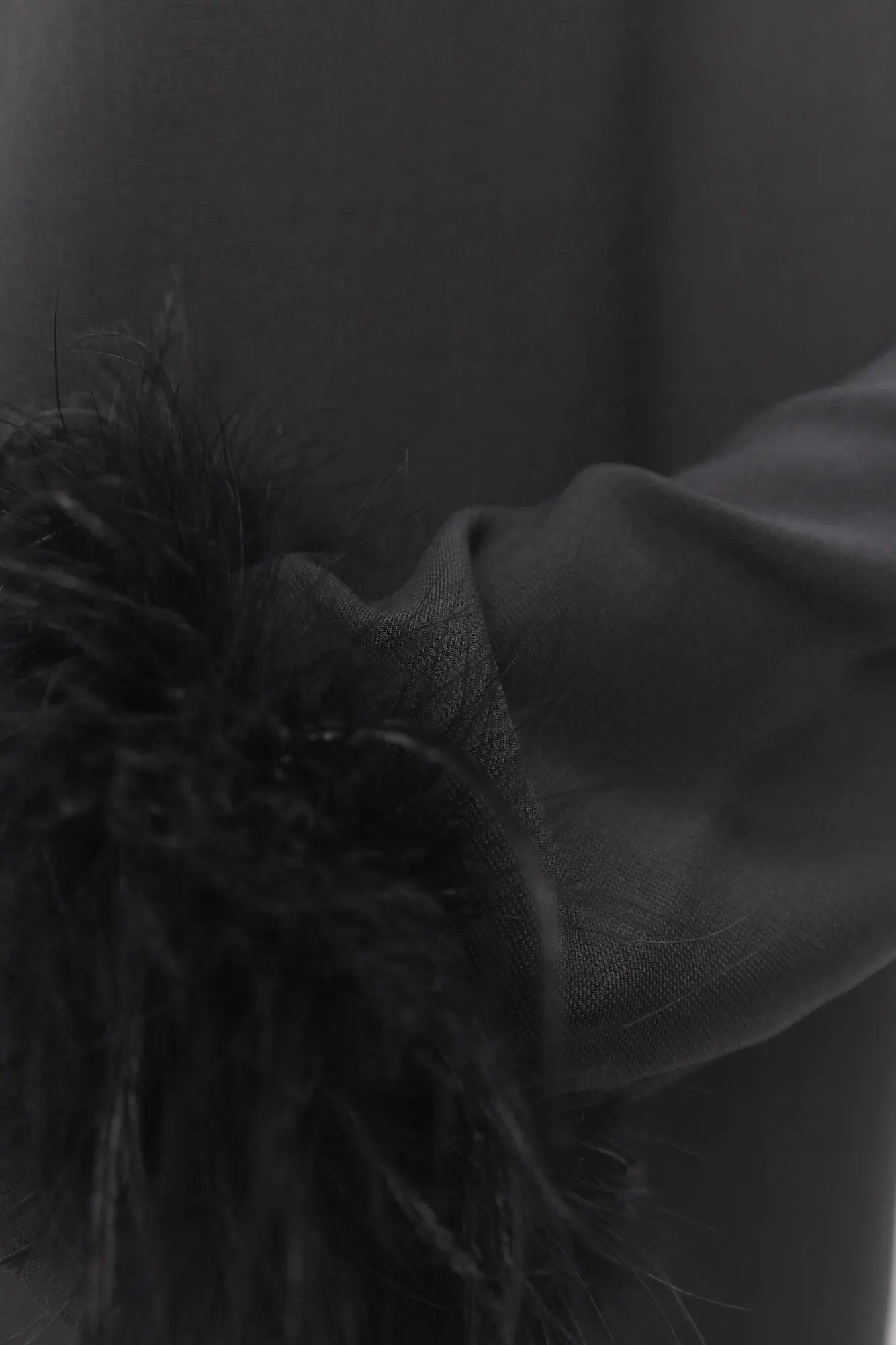 - Manches longues droites avec empiècement aux poignets et bande de fausses plumes amovible