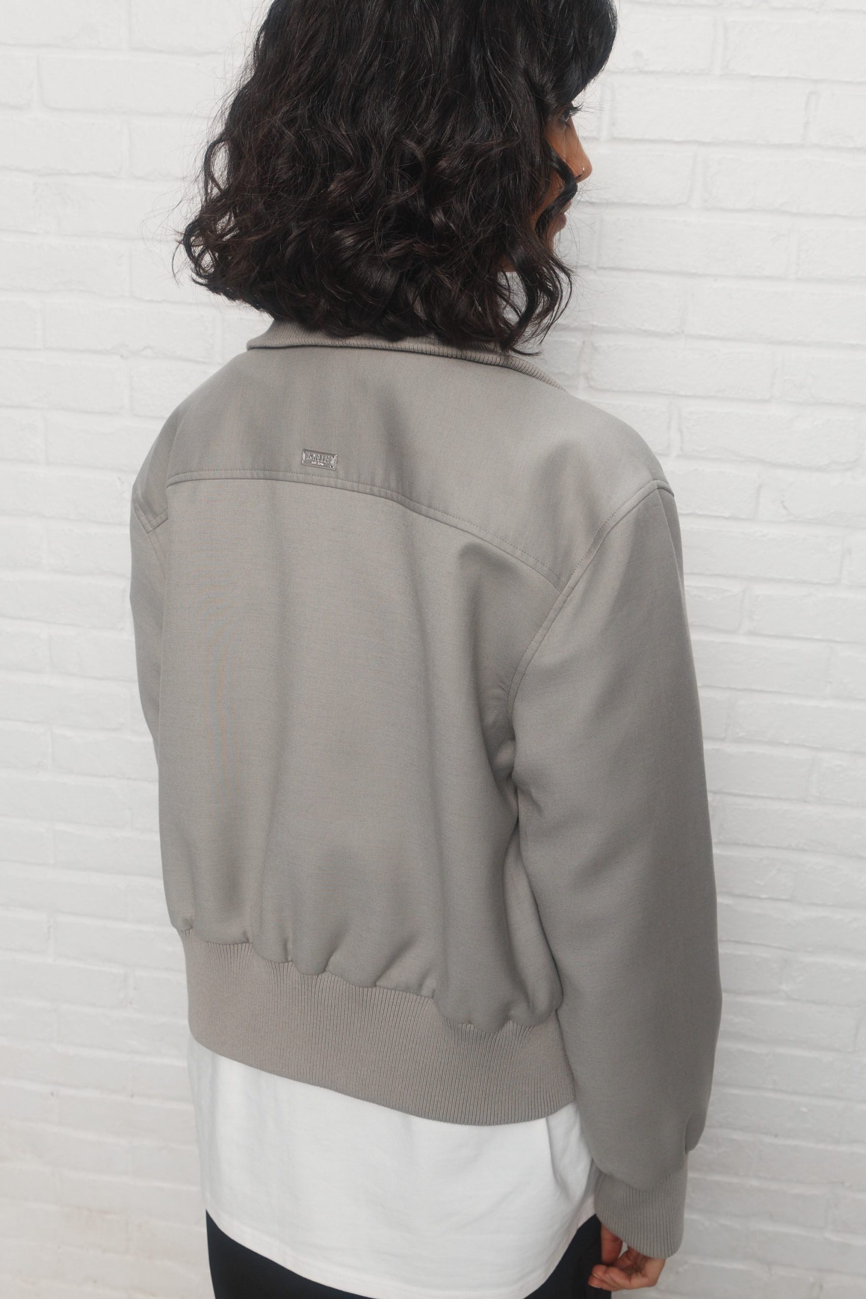 - Col montant en tissu côtelé