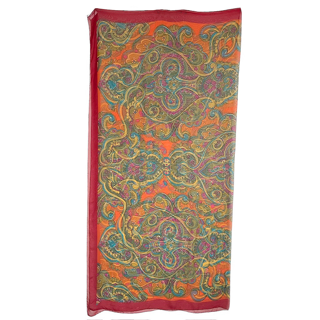 YSL grand carré mousseline soie, Yves Saint Laurent imprimé Elephant Paris vintage années 80, roulotté main, 139X137