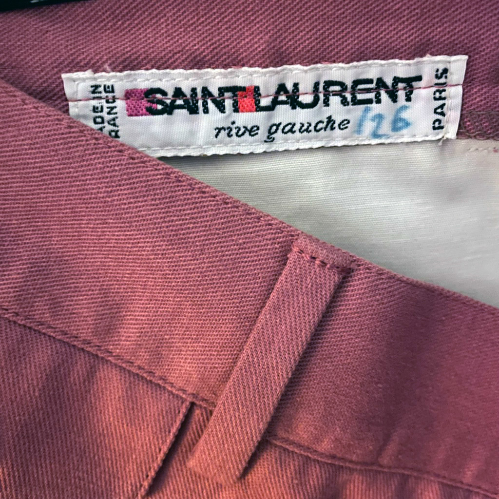 YSL Rive Gauche pantalon droit à pinces rose, vintage années 80, 100% coton, ourlet à faire, neuf d’époque, deux poches passe poilées et boutonnées derrière Elephant Paris Vintage Taille 36/38